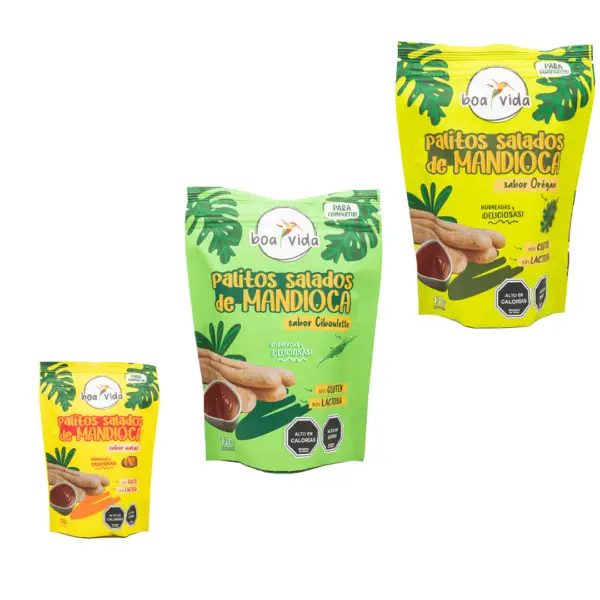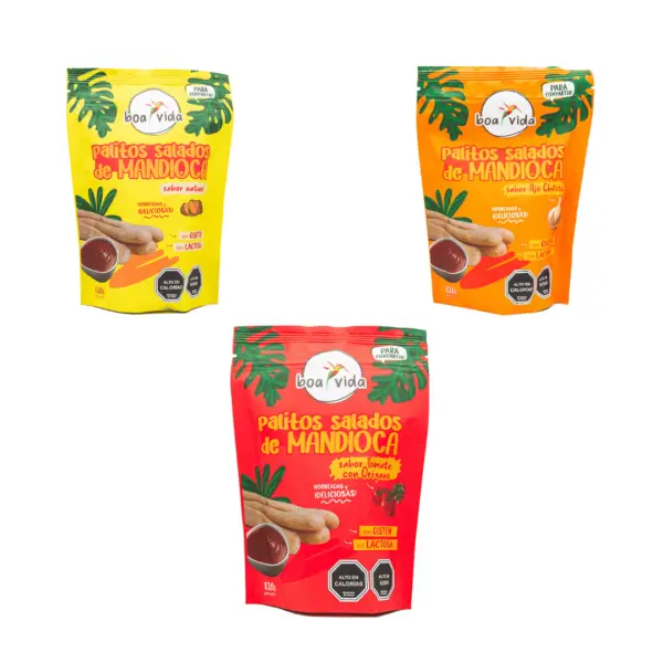 Disfruta estas fiestas, cumpleaños o la celebración que desees junto a boa vida, obtén este pack con 3 palitos de mandioca en tus sabores favoritos.